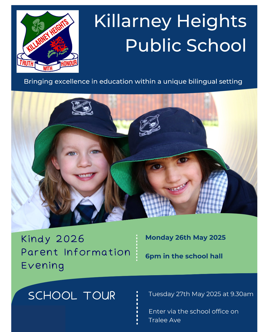 Get a glimpse inside the classrooms, hall, library, oval, canteen, music room, and more to see the school in action. The tour will begin at the school office on Tralee Ave on Tuesday 27 May 2025 at 9:30am.
